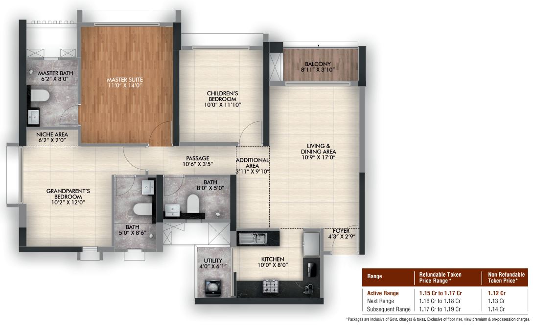 | 3 BHK Grand | 1011.28 - 1039.48 Sq.Ft | ₹ On Request |